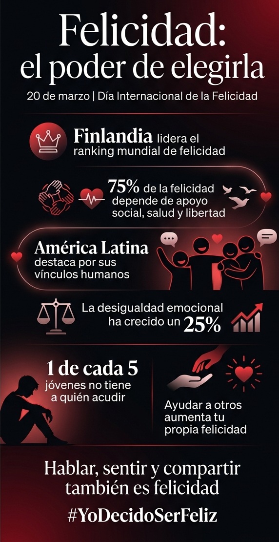 En un tiempo donde la incertidumbre parece dominar la conversación global, la felicidad emerge como una decisión íntima, poderosa y profundamente humana. Hoy, más que nunca, hablar, compartir y conectar no es un lujo: es una necesidad vital.